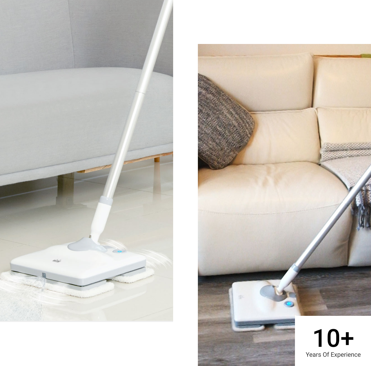Our product utilises powerful centrifugal force to effortlessly spin the mop dry in seconds, no more wet floors! While the built-in washing agitator spins the mop head clean every time.