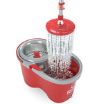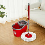 The Spin Mop Dada utilises powerful centrifugal force to effortlessly spin the mop dry in seconds, no more wet floors! While the built in washing gear spins the mop head clean every time. Our super absorbent microfibre strands absorb up to 99% dirt & bacteria. The ergonomic head is suitable for all floor types, reaches under & around furniture while the optional scrubbing brush attachment is great for stubborn dirt! It's reinforced stainless steel handle with quick release lock provides extra durability while the foam hand grip ensures optimal comfort. The machine washable head will insure you have a fresh mop every time.